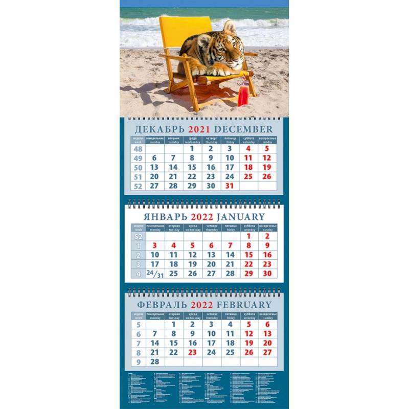 Календарь на 2022 год, настенный, квартальный, с пиколло и курсором для выделения текущей даты.