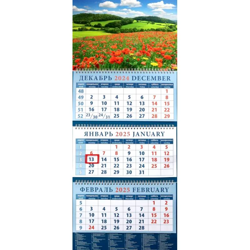 —Календарь квартальный на 2025 год Пейзаж с маками