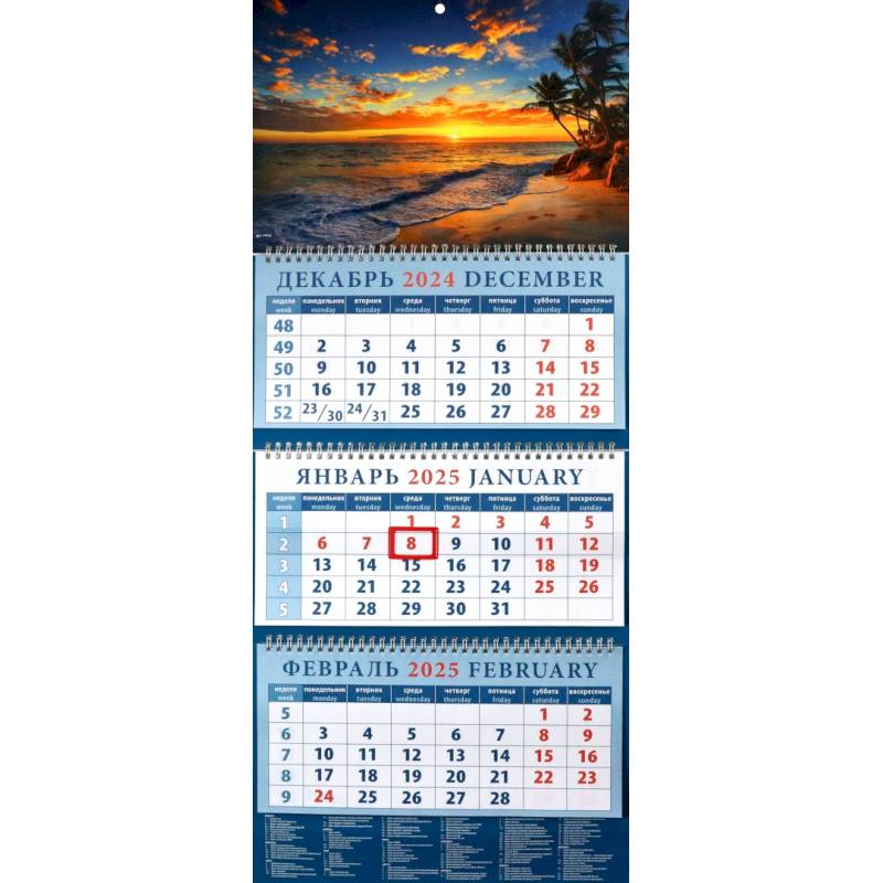 Календарь на 2025 год, настенный, ежемесячный.
