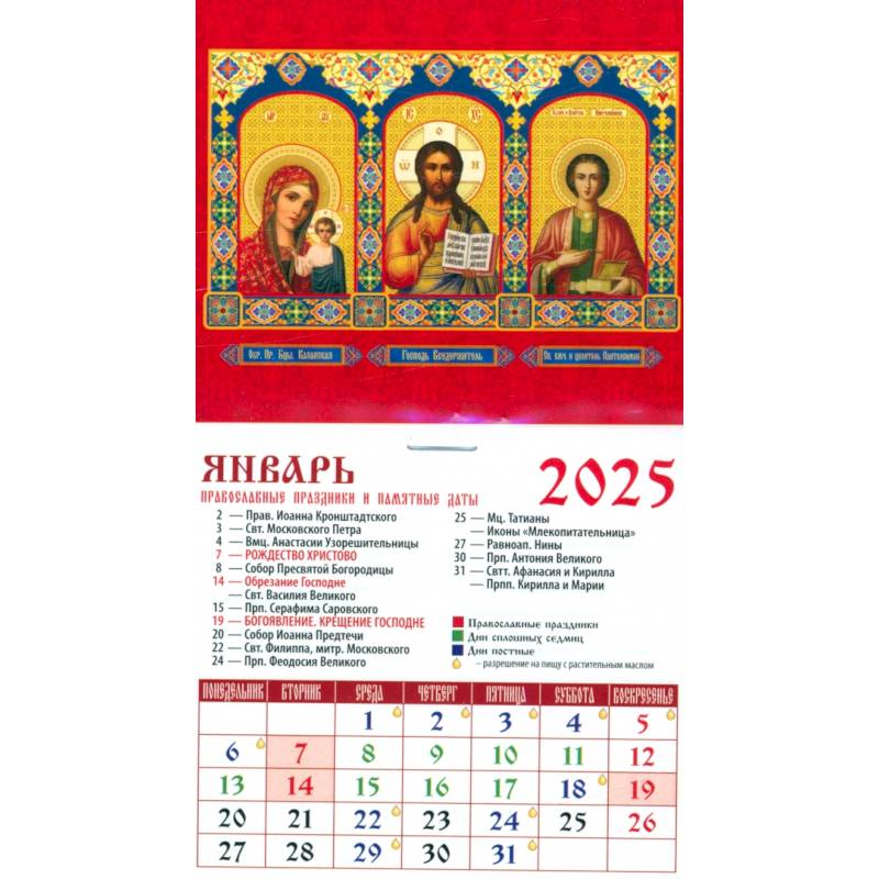 Календарь на 2025 год с указанием праздников, трапез и постов.