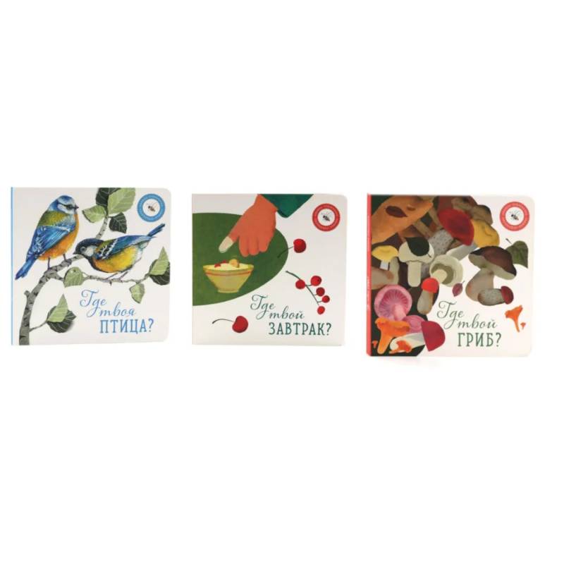 Идея энциклопедии воспитания вкуса воплощена в целой серии книжек-картонок для малышей 0+. Эти тактильные, удобные и познавательно-развлекательные книги объединяют выразительные красивые иллюстрации и тексты с элементами звукописи, помогая ребёнку с первых дней жизни открывать для себя окружающий мир. В комплект входят красочные книги-картонки, которые познакомят малышей с удивительным миром грибов и птиц, а также расскажут о важности правильного питания.