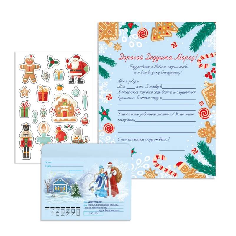 Написание письма Деду Морозу — это не только добрая новогодняя традиция, но и возможность создать вместе с ребенком настоящую зимнюю сказку! Заполните письмо и положите его в конверт, на котором уже указан официальный адрес дома Деда Мороза, — послание обязательно дойдет до адресата!
