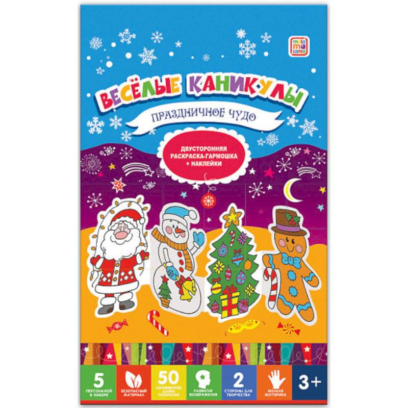 Двусторонняя раскраска понравится любому ребенку. Она сделана в виде гармошки. Раскрашивая героев и наклеивая наклейки, можно оживить их. Рисование позволит развить творческие способности ребенка, его фантазию и усидчивость.
