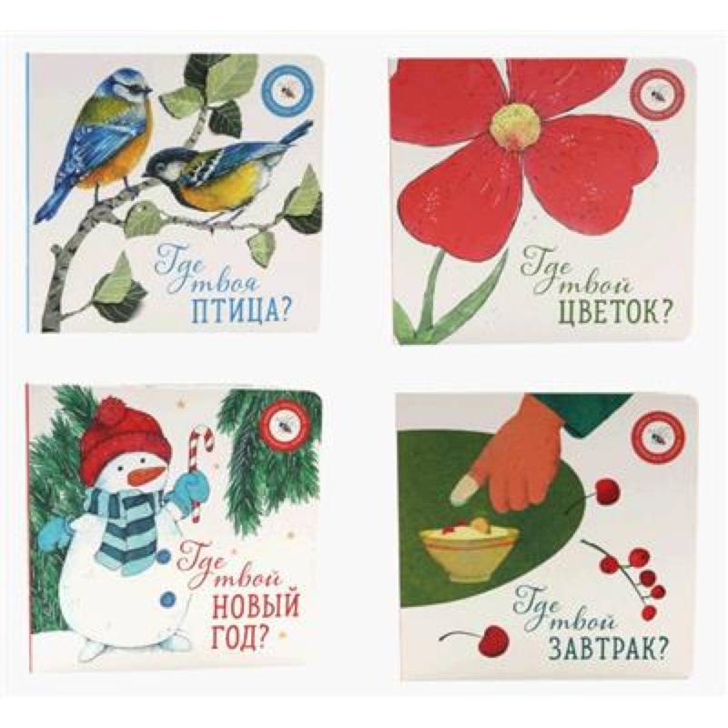 Идея энциклопедии воспитания вкуса воплощена в целой серии книжек-картонок для малышей 0+. Эти тактильные, удобные и познавательно-развлекательные книги объединяют выразительные красивые иллюстрации и тексты с элементами звукописи, помогая ребёнку с первых дней жизни открывать для себя окружающий мир. В комплекте представлены яркие книги-картонки, которые расскажут малышам о цветах, птицах, еде и праздниках.