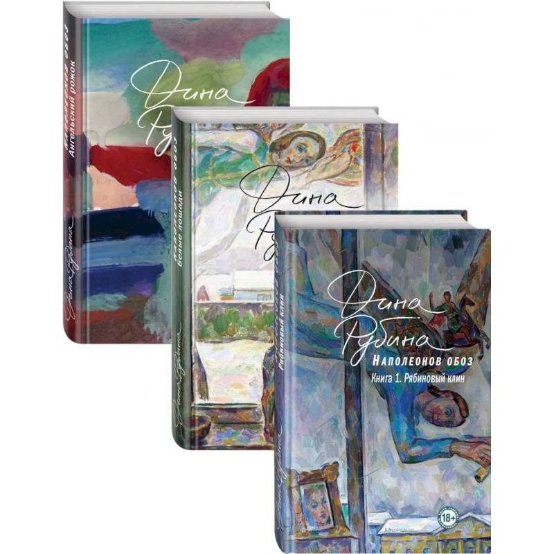 Наполеонов обоз. Книга 1: Рябиновый клин Роман в трех книгах 'Наполеонов обоз' при всем множестве тем и мотивов – история огромной любви. История Орфея и Эвридики, только разлученных жизнью. Первая книга 'Рябиновый клин' - о зарождении чувства. Наполеонов обоз. Книга 2: Белые лошади Вторая книга романа 'Наполеонов обоз' – 'Белые лошади' – затягивает читателя в воронку любви и предательства, счастья и горя двух главных героев – Аристарха и Надежды. За короткий срок на них обрушивается груз сильнейших потрясений, которые не часто и не всем выпадают в юности. Сильные, цельные натуры, оба они живут на такой высоте чувств, которая ничего не прощает. Судьба буквально расшвыривает в разные стороны двух влюблённых. Каждый из них теперь идет своим отдельным путем, оставаясь навсегда глубоко одиноким, раненым душевно. По ходу романа продолжает приоткрываться давняя история предка Стаха Бугрова – Аристарха Бугеро, офицера Наполеоновской армии, прожившего в России свою трагическую и таинственную жизнь. И парадоксальным образом оказывается, что история эта вовсе не завершилась полтораста лет назад. Наполеонов обоз. Книга 3: Ангельский рожок Жизни Надежды и Аристарха наконец-то страстно и мгновенно срослись в единое целое, запылали огненным швом – словно и не было двадцатипятилетней горькой – шекспировской – разлуки, будто не имелась за спиной у каждого огромная ноша тяжкого и порою страшного опыта. Нет, была, конечно: Надежда в лихие девяностые пыталась строить свой издательский бизнес, Аристарх сам себя заточил на докторскую службу в израильскую тюрьму. Орфей и Эвридика встретились, чтобы… вновь разлучиться: давняя семейная история, связанная с наследством наполеоновского офицера Ариcтарха Бугеро, обернулась поистине монте-кристовской – трагической – развязкой.