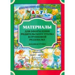 Издательство 'Детство-Пресс' продолжает выпуск серии 'Информационно-деловое оснащение ДОУ'. Кроме материалов для общесадовских стендов теперь это и сменный материал для родительских уголков в групповых помещениях. В данном выпуске представлены материалы для родительского уголка в младшей группе детского сада с сентября по февраль включительно. Эти материалы помогут родителям организовать домашние развивающие занятия с ребенком, выбрать художественные произведения для чтения и заучивания. На страничках для родителей содержатся рекомендации по организации наблюдений за природой во время прогулок, приведены описания игр и упражнений, в процессе выполнения которых будут развиваться мыслительные операции, речь, моторика дошкольника. На каждый месяц года мы разработали по 4 странички с играми, упражнениями, рекомендациями. Мы надеемся, что родительские уголки, оформленные с помощью предложенных материалов, не только привлекут внимание мам и пап, бабушек и дедушек, но и станут элементом оформления групповых раздевалок.