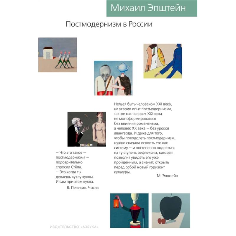 «Постмодернизм в России» - это разностороннее исследование российского постмодерна, его истоков и основных этапов в XX веке, а также культурно-исторических отличий от западного постмодернизма. В России постмодернизм стал не только направлением в философии, литературе и искусстве, но и способом критического и иронического осмысления повседневности, общественно-политических и технических симулякров. Эта книга писалась на протяжении почти сорока лет, одновременно со становлением самого российского постмодернизма, у истоков которого стоял и сам М. Эпштейн. Автор выдвигает оригинальную концепцию конца Нового времени и соотношения постмодернизма с коммунизмом, модернизмом, экзистенциализмом. Рассматривает основные литературные и теоретические программы постмодерна в творчестве его ярких представителей (А. Синявский, И. Кабаков, Вен. Ерофеев, Д. Пригов, Т. Кибиров, А. Генис…) и отдельных направлений (метареализм, концептуализм, соцарт, арьергард).