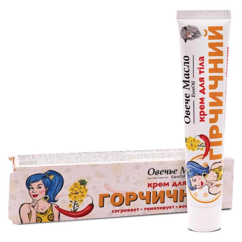 Крем для тела EweOil Горчичный изготовлен на основе природного вещества ланолина. Он обладает смягчающими свойствами, заживляет пораженные участки, образуя защитный барьер на поверхности кожи.