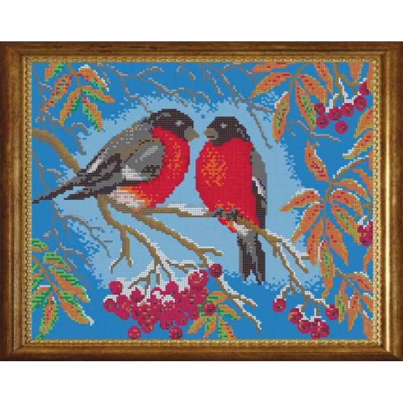 ВЛ-047П 'Снегири' 38x30 см набор на атласе для вышивания чешским бисером 'Вышивочка'